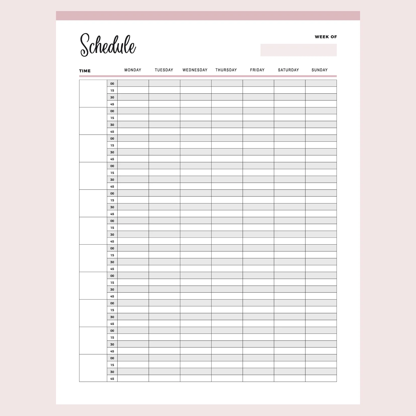 Printable 15 Minute Schedule Instant Download PDF A4 And US Letter Plan Print Land
