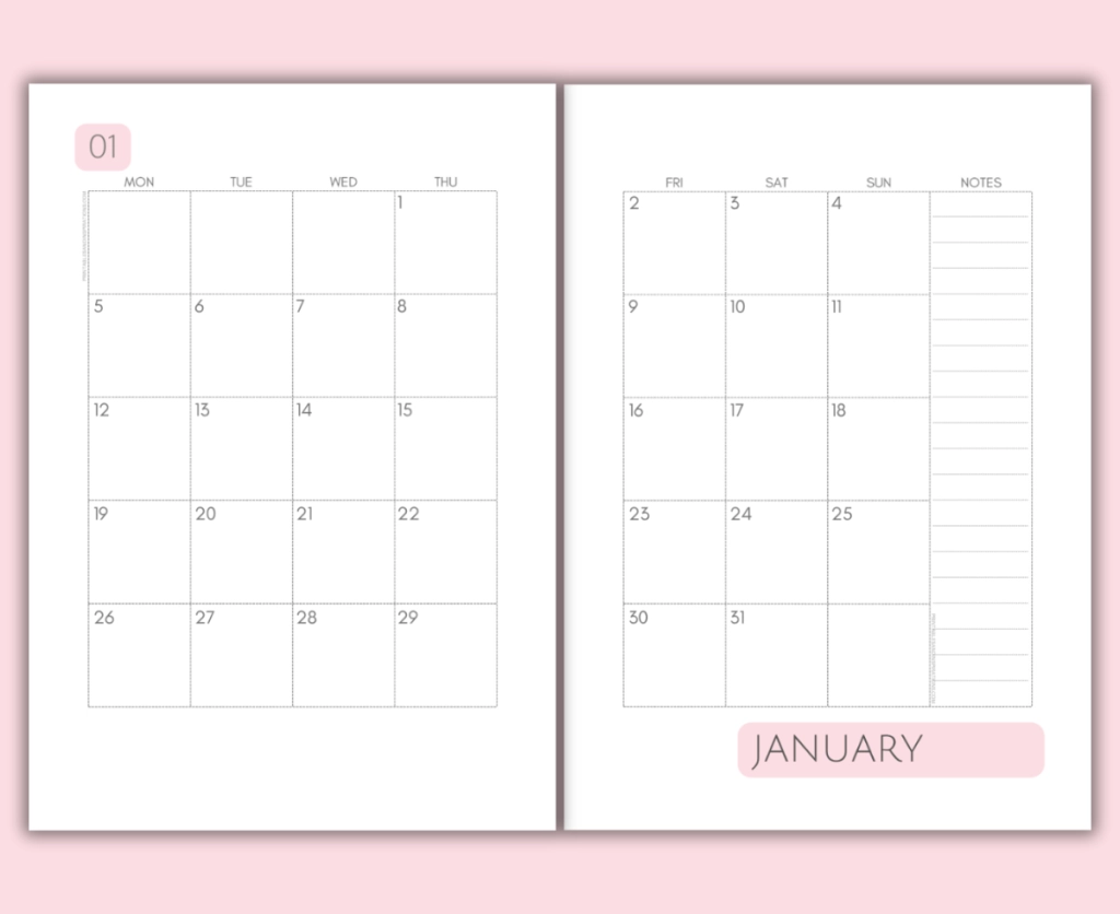 A5 Blank Monthly Calendar Template Printable PDF Instant Download Plan Print Land