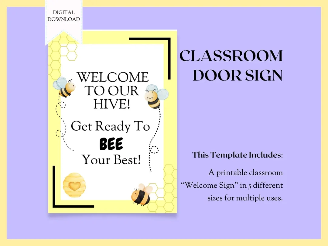 Printable classroom decor is a great way to personalize your learning environment without breaking the bank. With this Bee Teacher Classroom Door Sign, you can simply download, print, and hang it up in minutes. It’s easy, affordable, and adds a pop of color to your space.