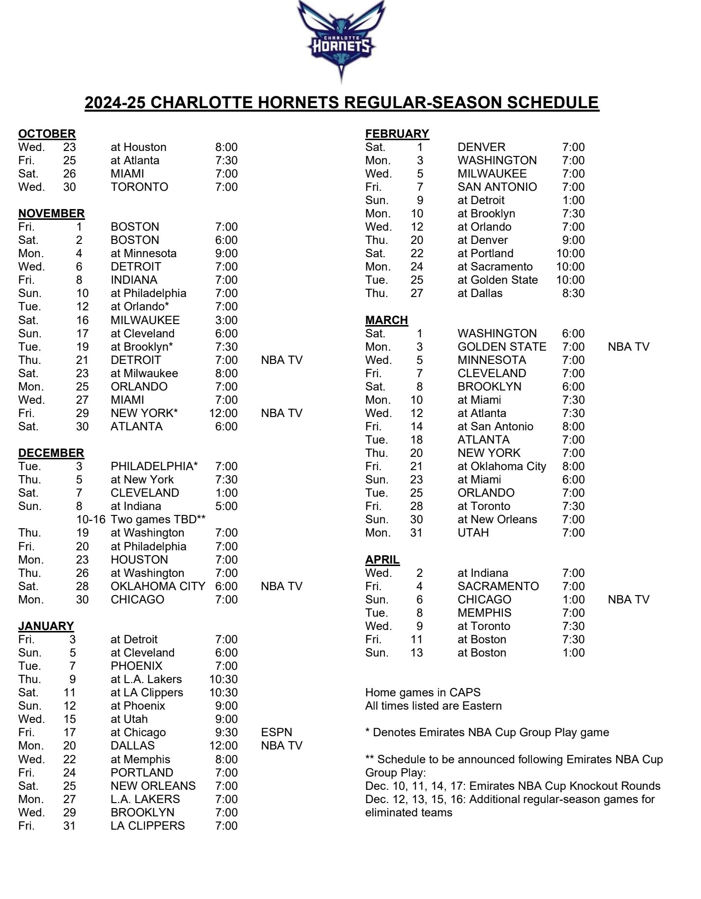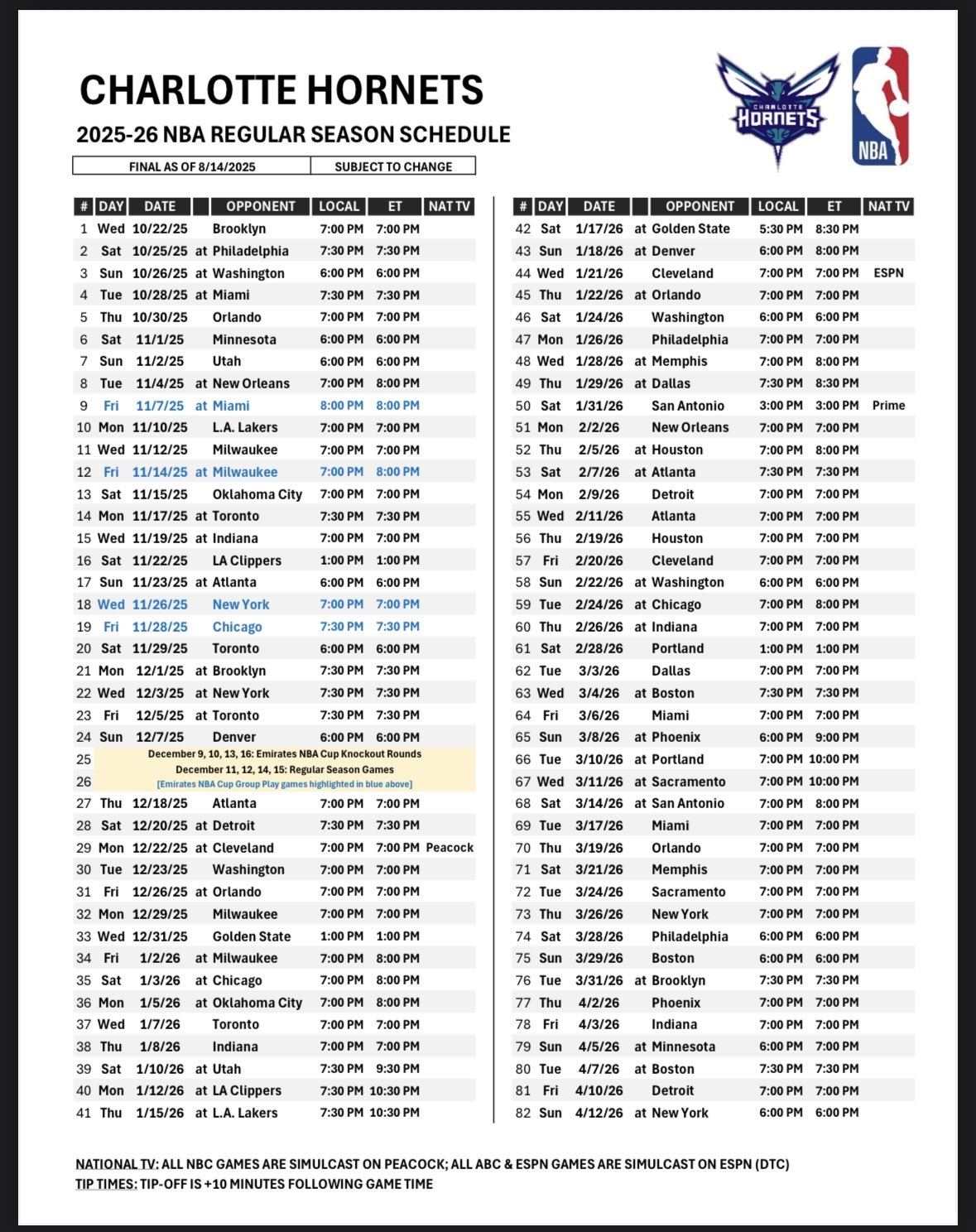 Will Eudy On X The Charlotte Hornets Full Schedule For 2025 26 Https t co KSyfUXXzTS X