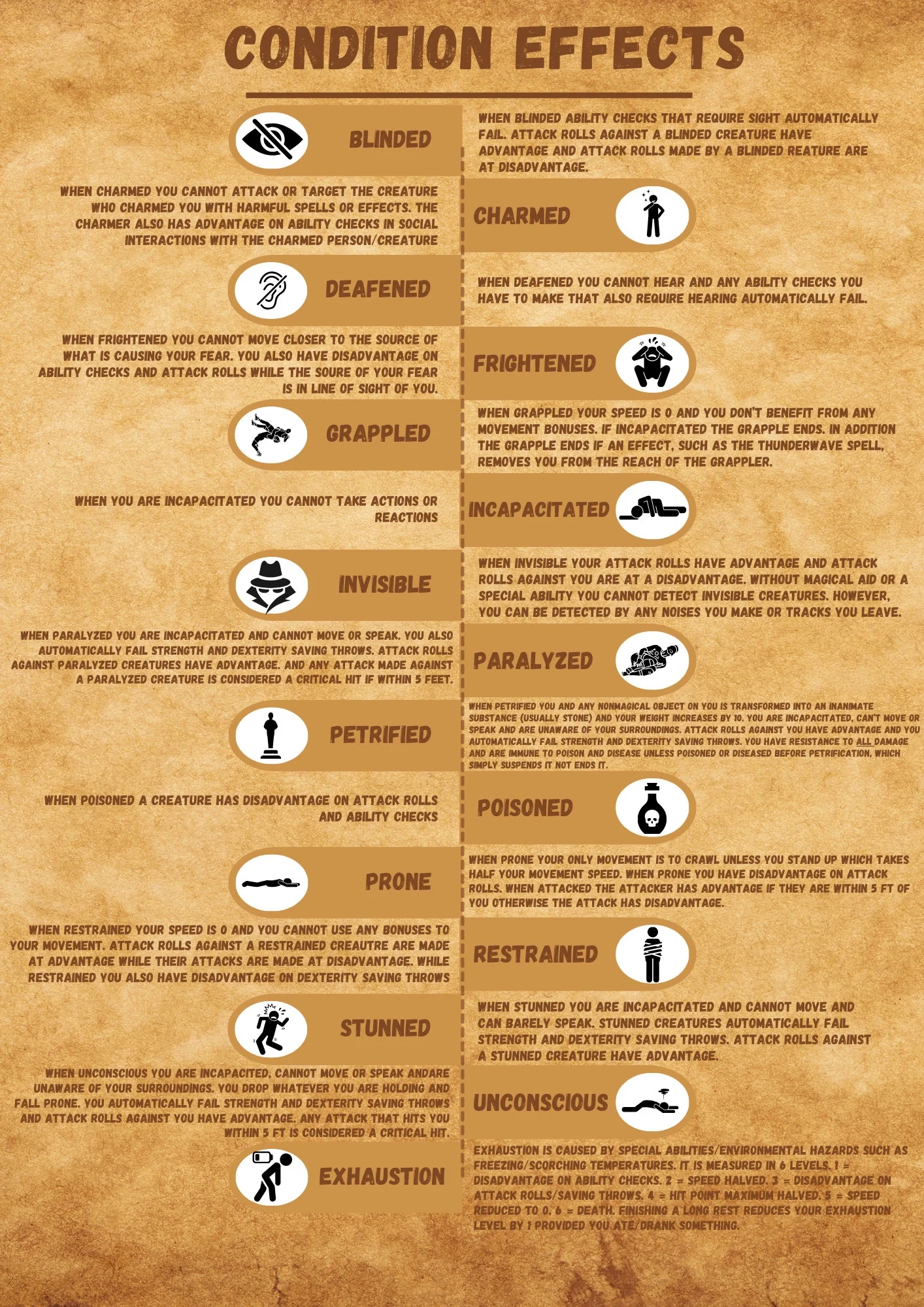 Condition Effects Quick Reference Guide Dnd 5e Perfect For All Levels Of Experience Enhance Your Gaming Sessions 15 Conditions Listed Etsy