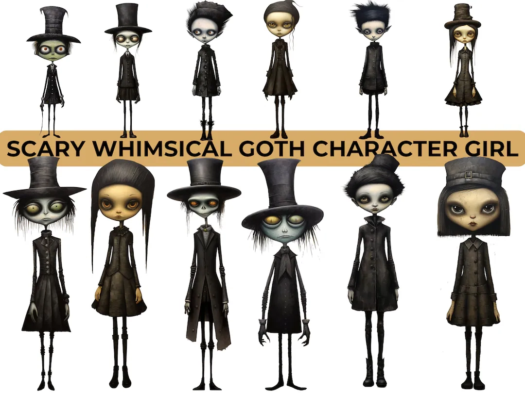 Scary Female Characters Mixed Media Graphics Whimsical Quirky Goth Character Girl Spooky Characters Printable Sheets Etsy