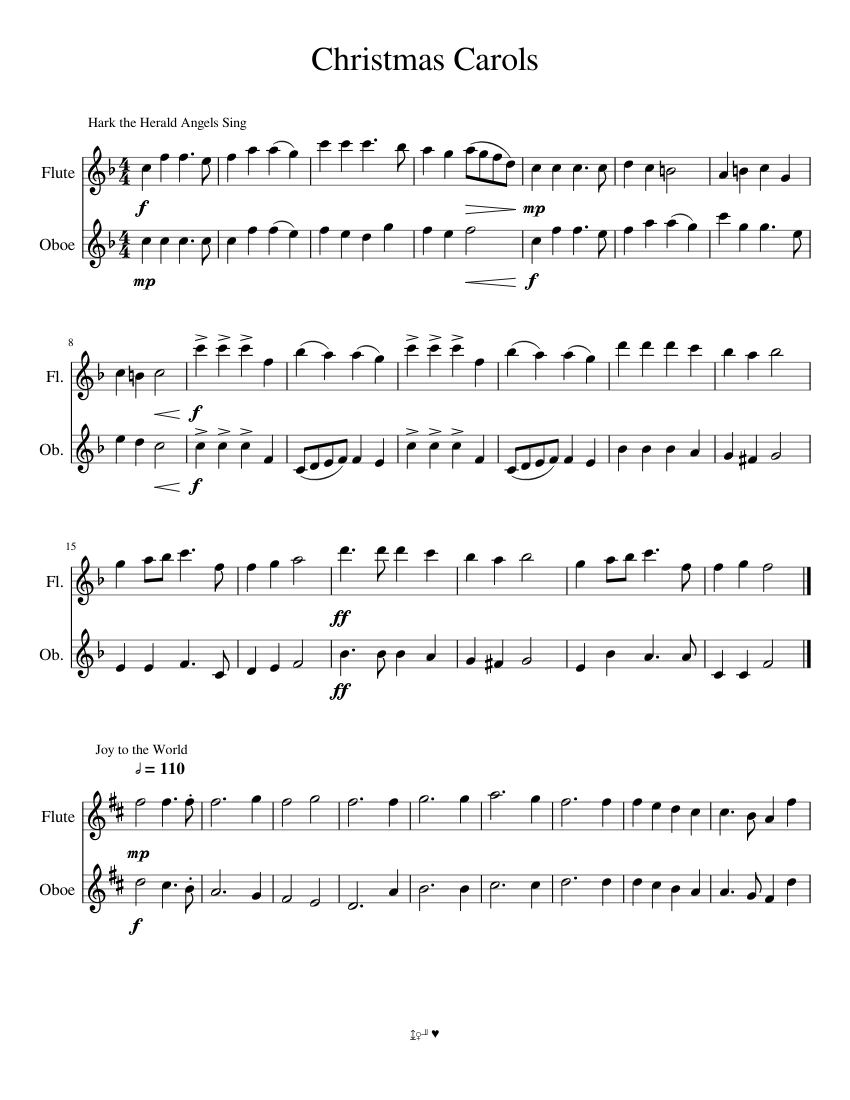 Christmas Carols Sheet Music For Flute Oboe Woodwind Duet MuseScore