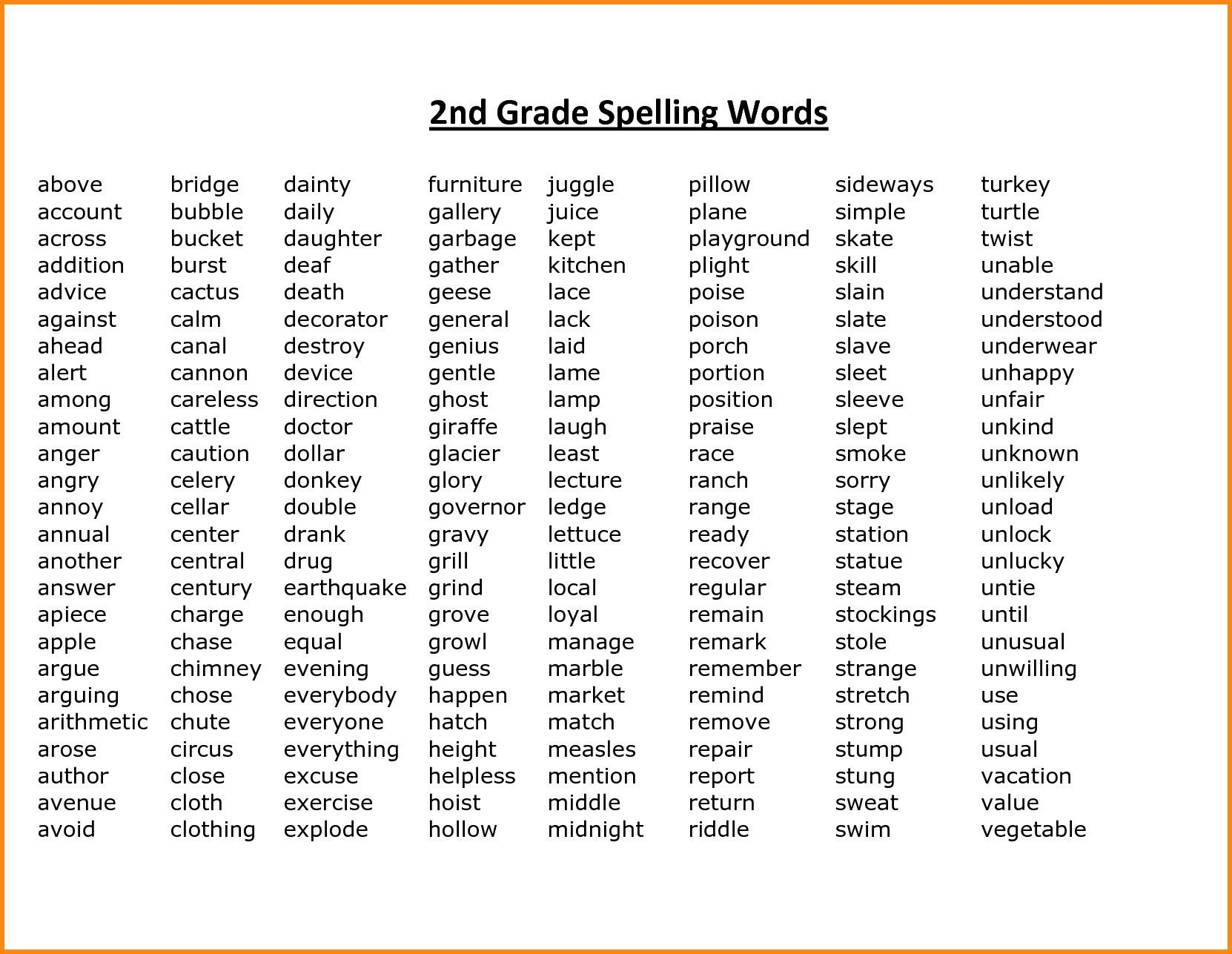Grade 2 Spelling Lists Printable
