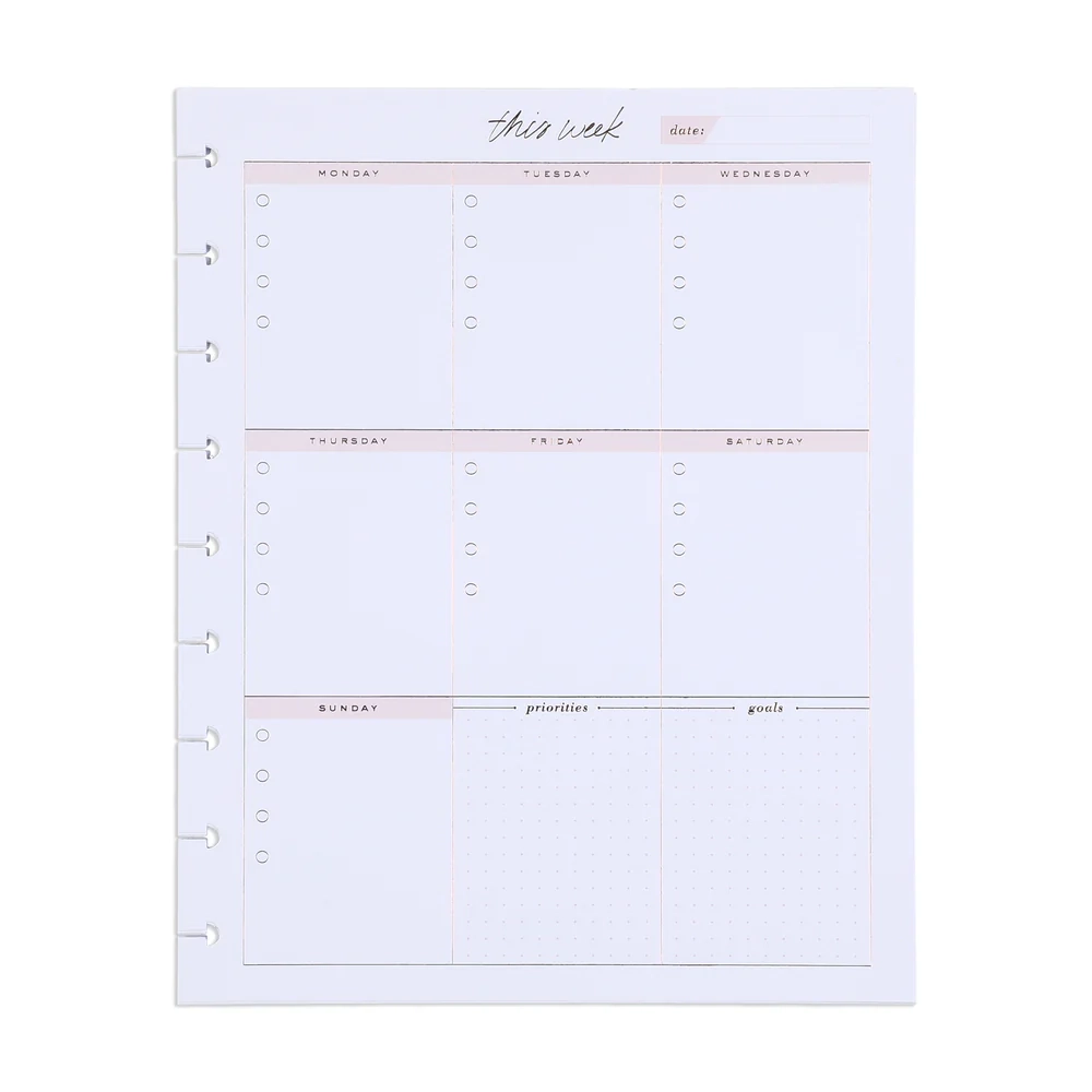 Simply download the printable file, print out as many sheets as you need, and punch holes to add them to your planner. It’s that easy! No more worrying about running out of fill paper at the most inconvenient times. With our printable option, you’ll always be prepared.