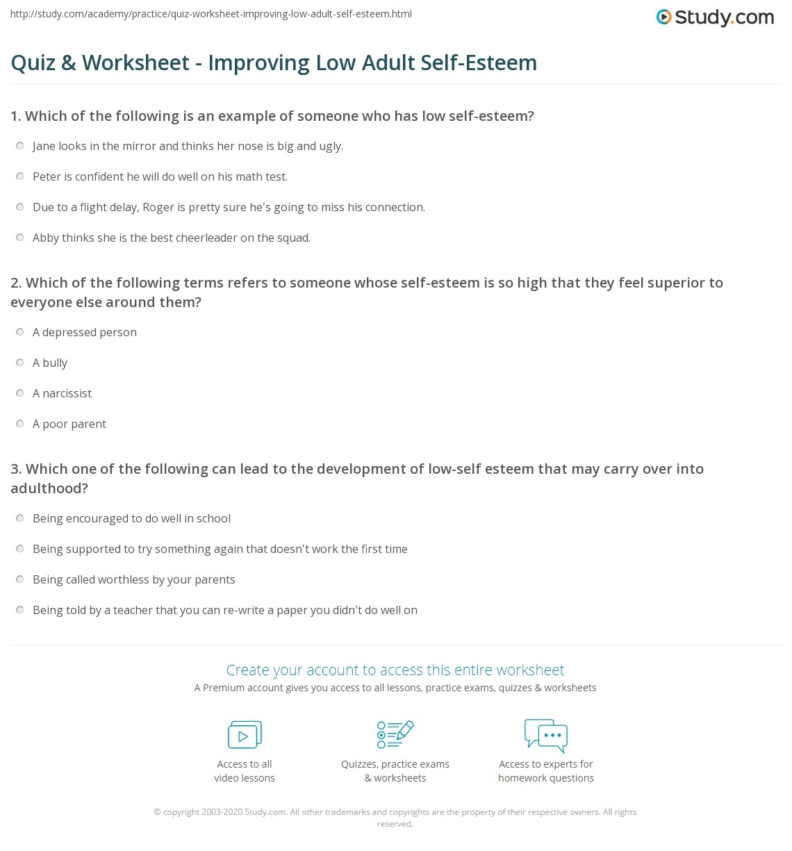 Quiz Worksheet Improving Low Adult Self Esteem Study