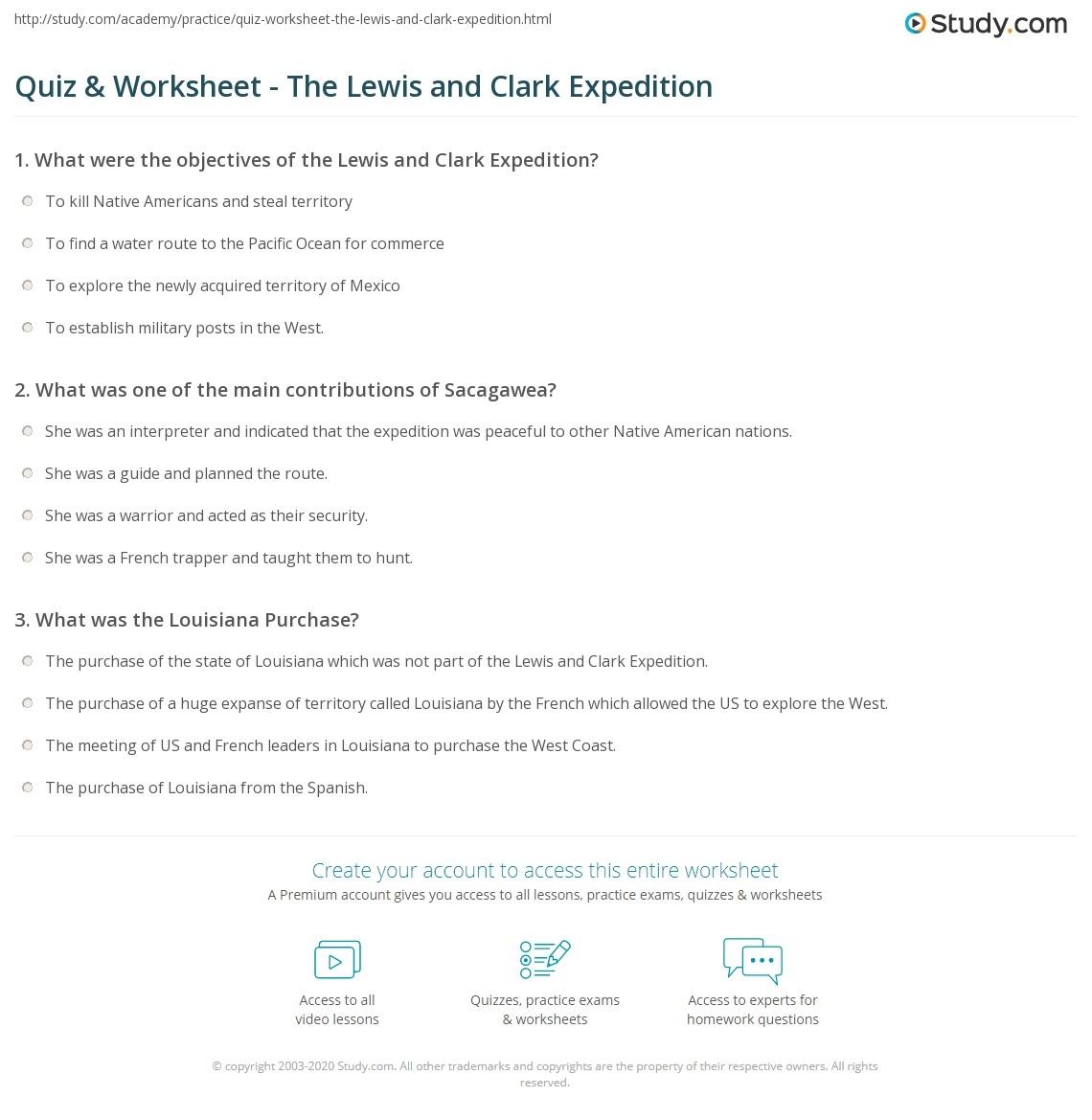 Quiz Worksheet The Lewis And Clark Expedition Study