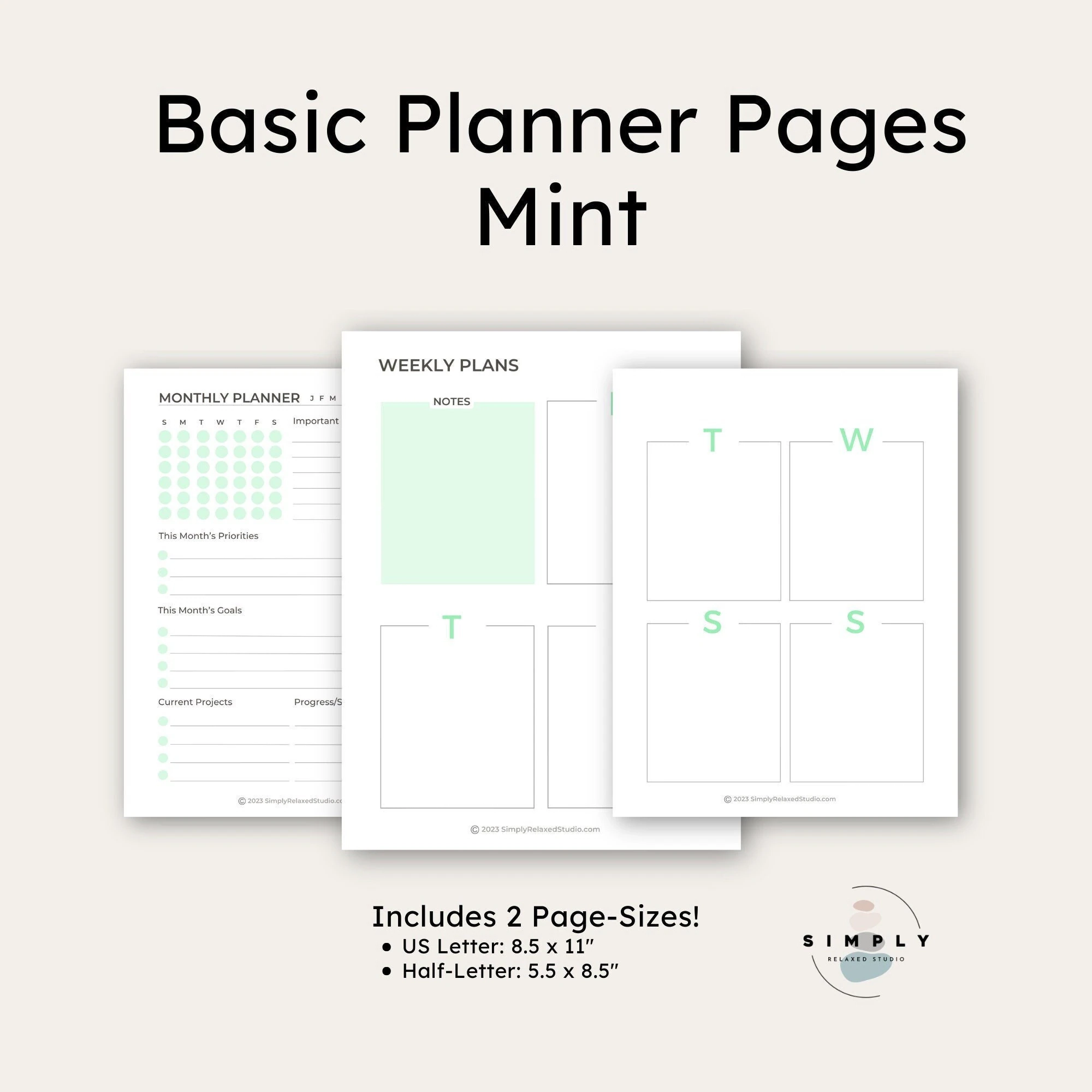 Minimalist Planner Inserts Daily Weekly Monthly Simple Planner Pages Mint Essential Usletter Planner Basic Planner Page Printable Pack Etsy