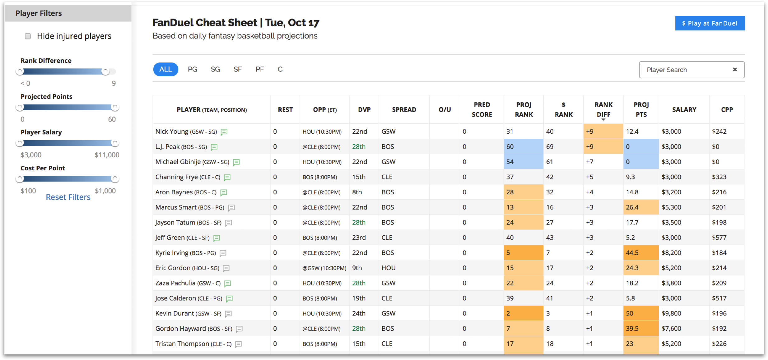 Nba Fantasy Cheat Sheet Printable