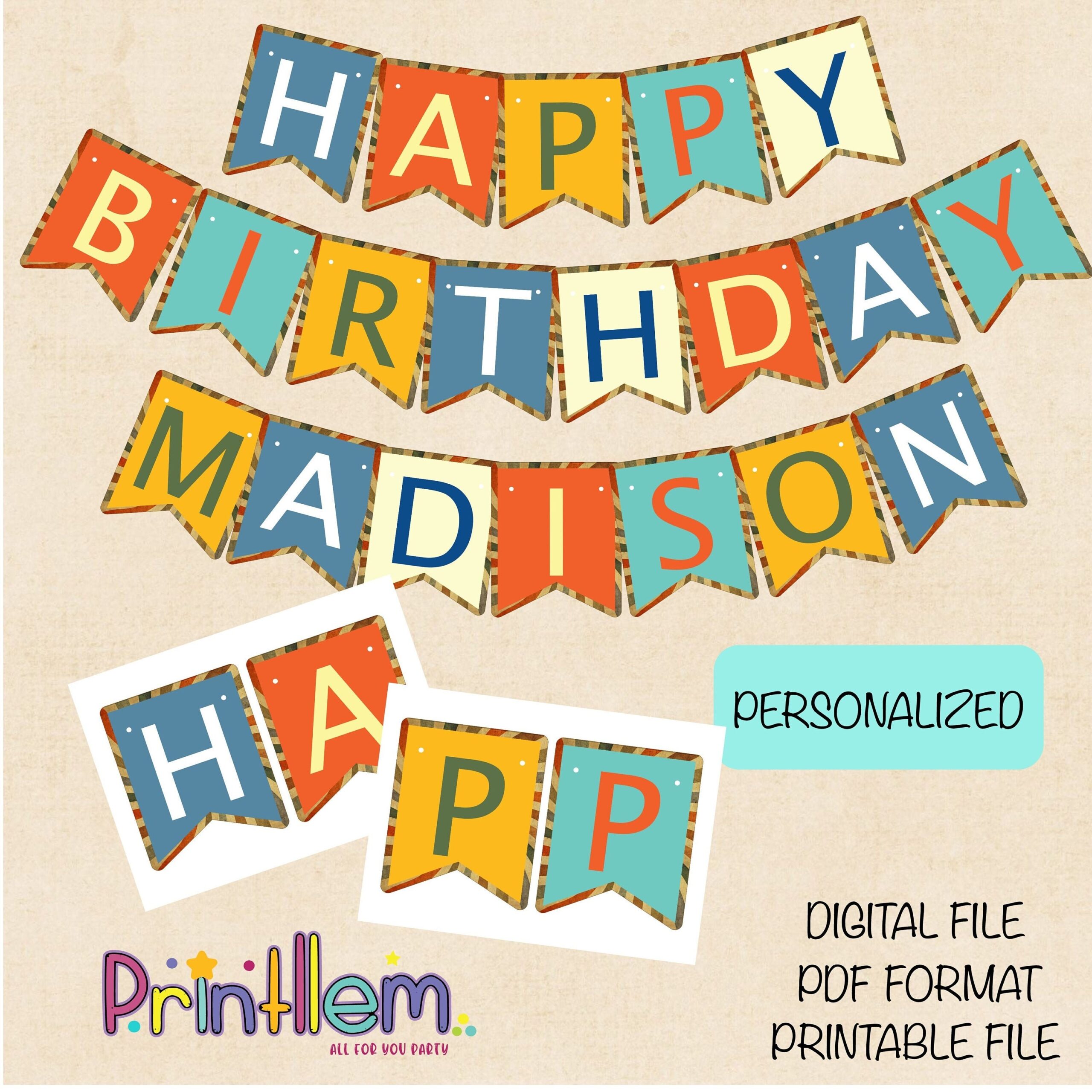 Personalized Vintage Happy Birthday Printable Banner personalized Banner Birthday Decoration milestone Banner custom Printable Banner Etsy