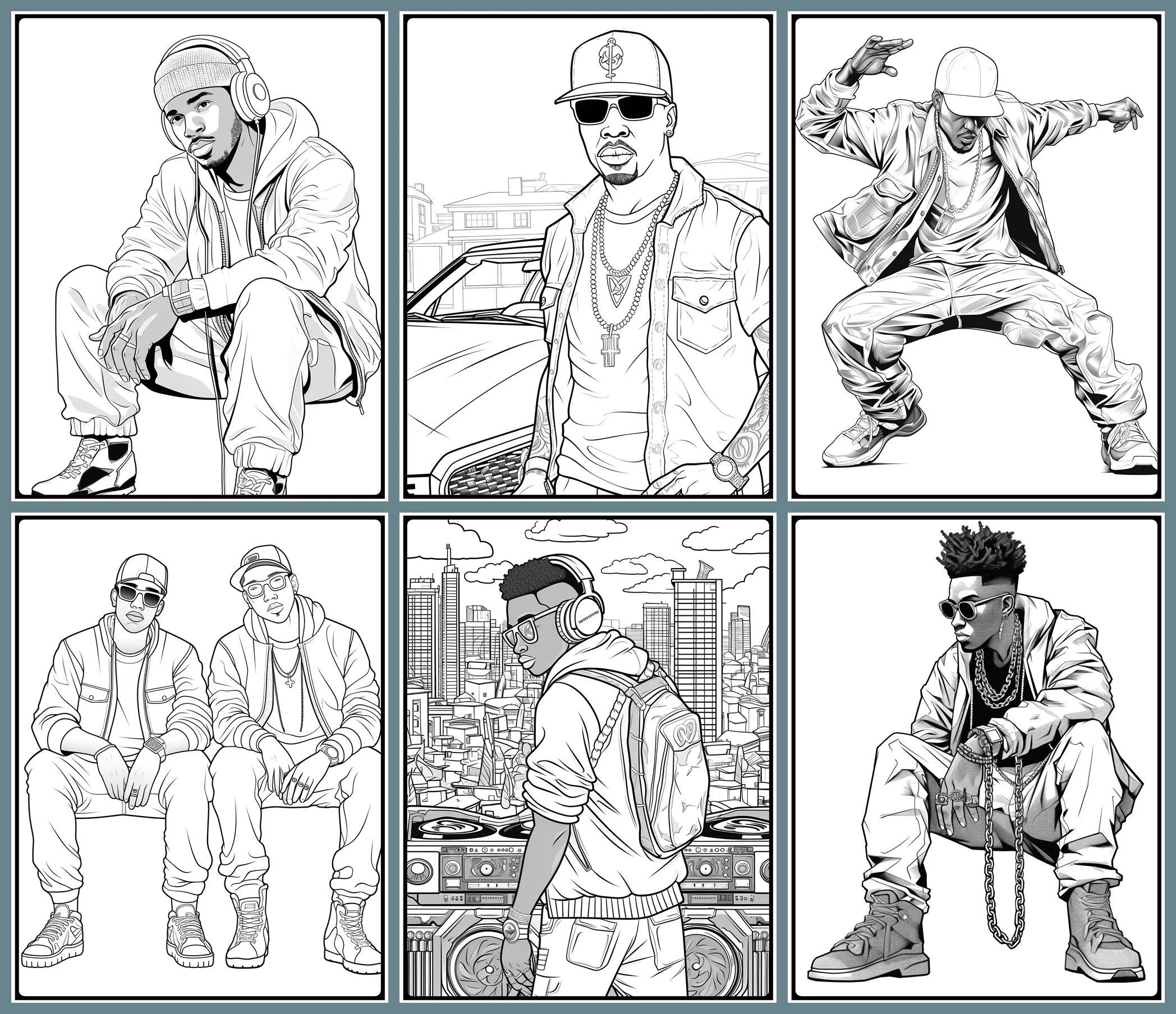50 Hip Hop Music Coloring Pages Hip hop Rap Printable Grayscale Coloring Book Pages Hip Hop Rapper Coloring Book For Adults Etsy