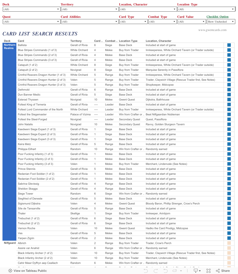 Gwent Cards Check List