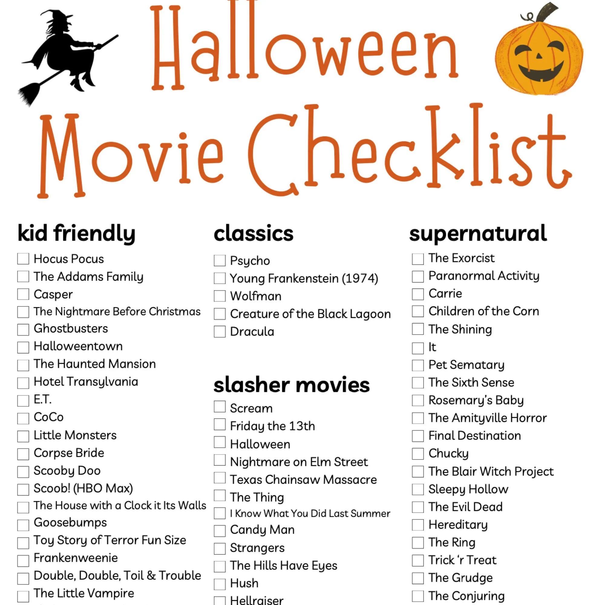 Kid Friendly Halloween Movie Checklist Family Movie Night PDF Etsy