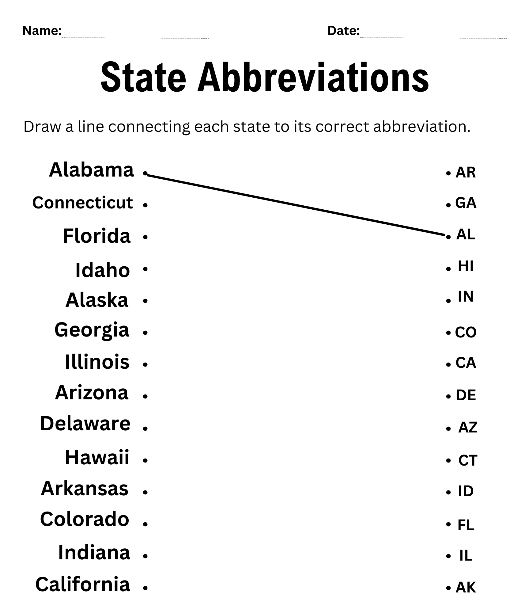 List Of Us State Abbreviations Worksheet State Abbreviation Matching Sheets Made By Teachers