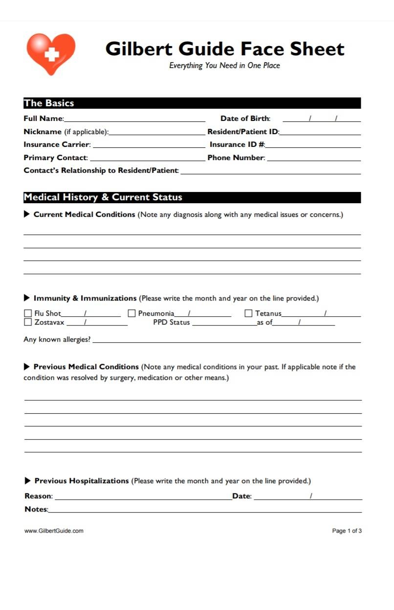 Printable Medical Face Sheet Template: Easy Organization at Your Fingertips