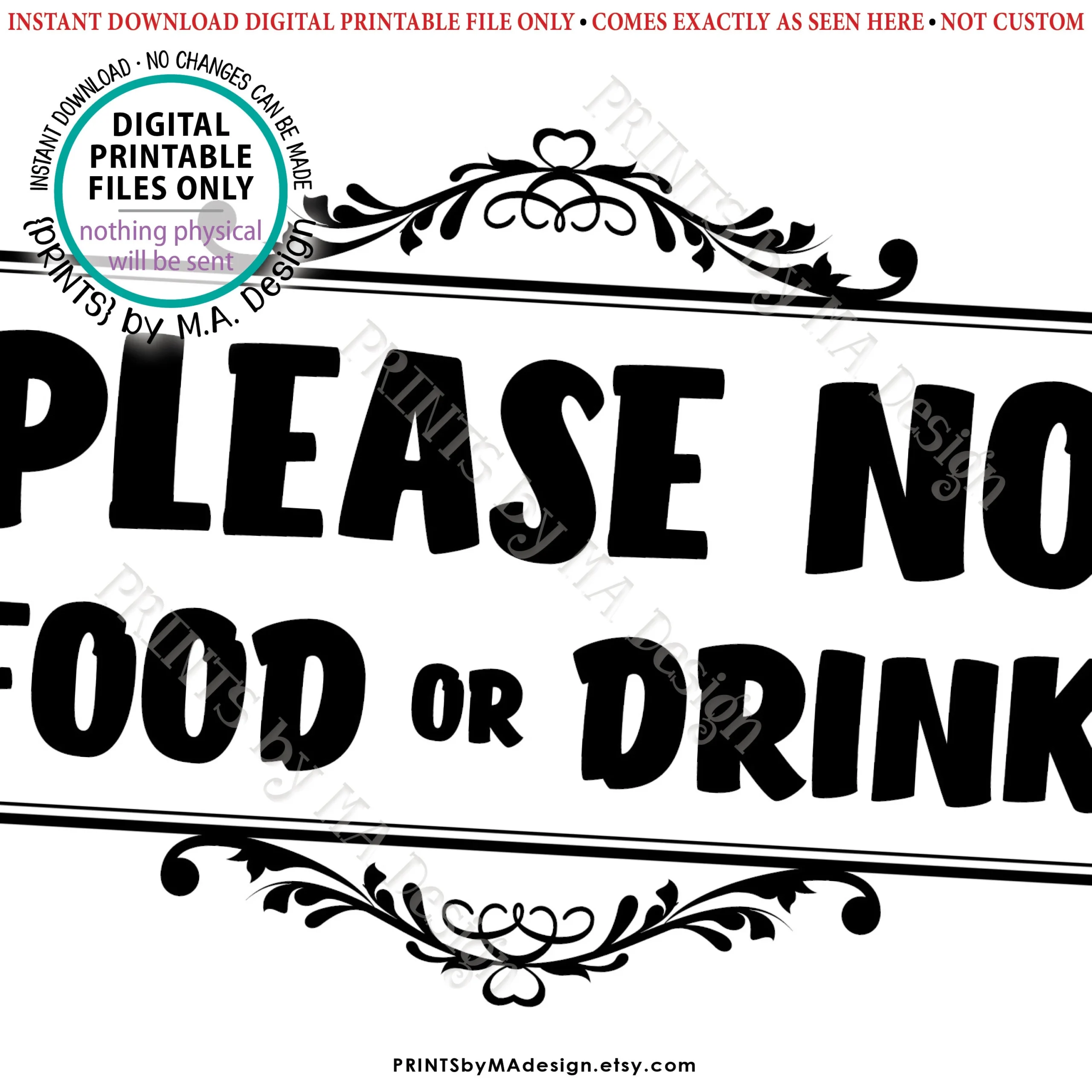 Make your life easier and your space cleaner by implementing a no food or drink policy with the help of printable signs. With just a few clicks and prints, you can create a more organized and respectful environment for everyone to enjoy.