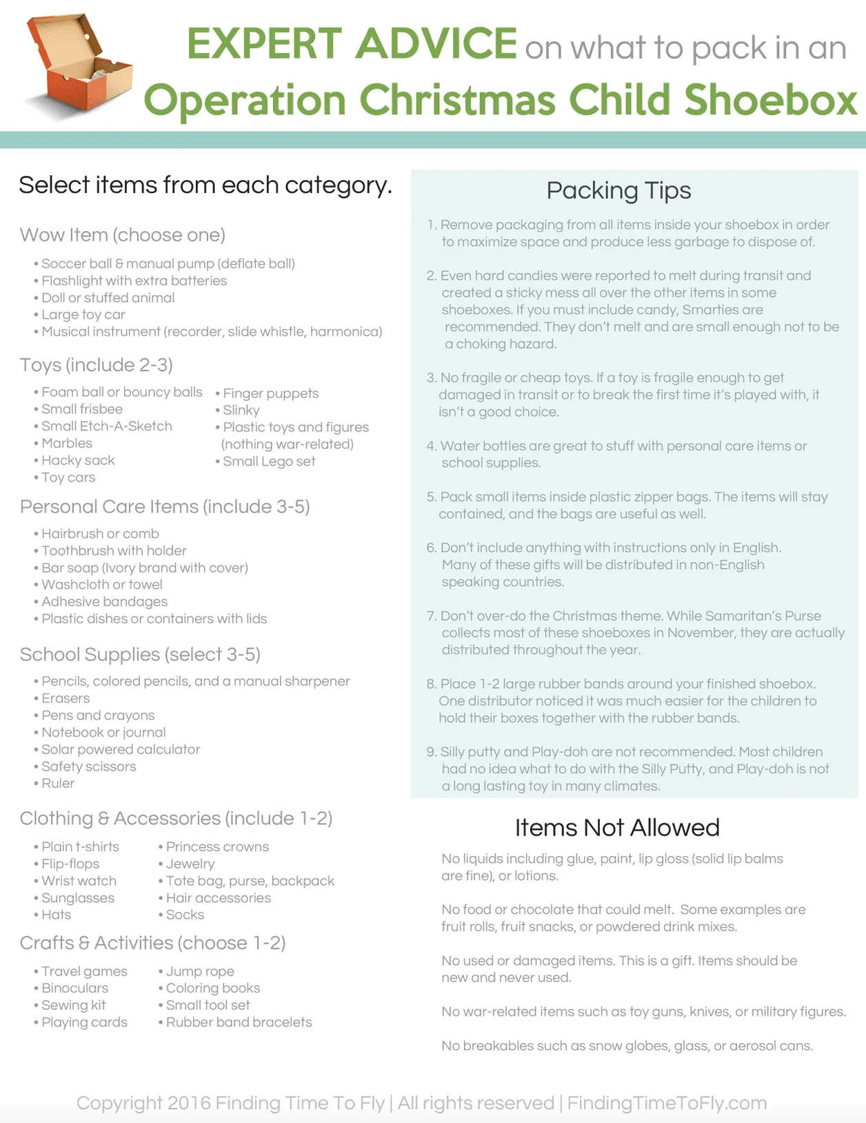 Creating a printable packing list for your Operation Christmas Child shoebox can help you stay organized and ensure you include all the essential items. From school supplies and hygiene items to toys and clothes, there are so many ways to make a child’s day brighter through your thoughtful gift.