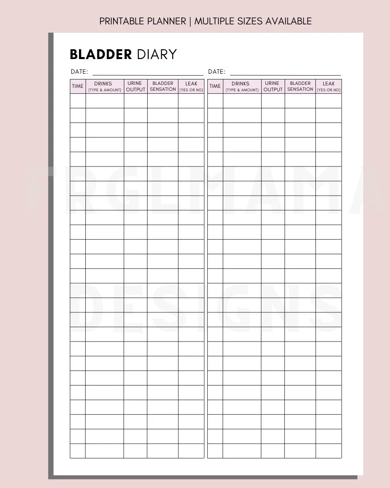 Bladder Diary Tracker Printable Urination Symptoms Log PDF Etsy