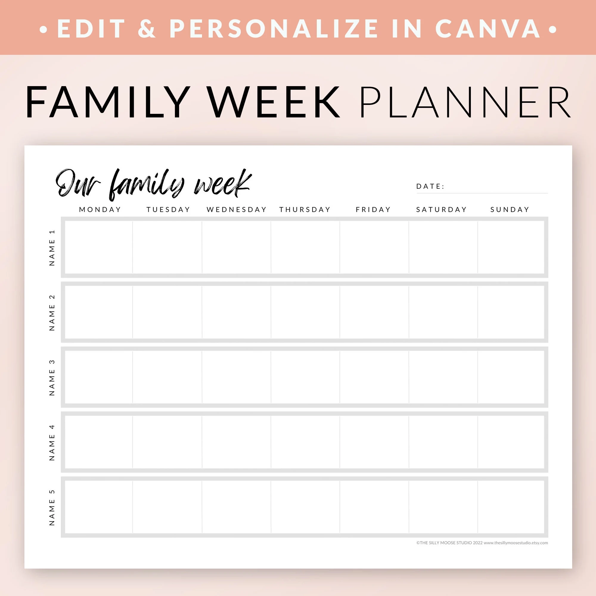 Weekly Family Planner Printable EDITABLE CANVA Planner Template Personalized Family Of Five Weekly Calendar Schedule Digital Download Etsy