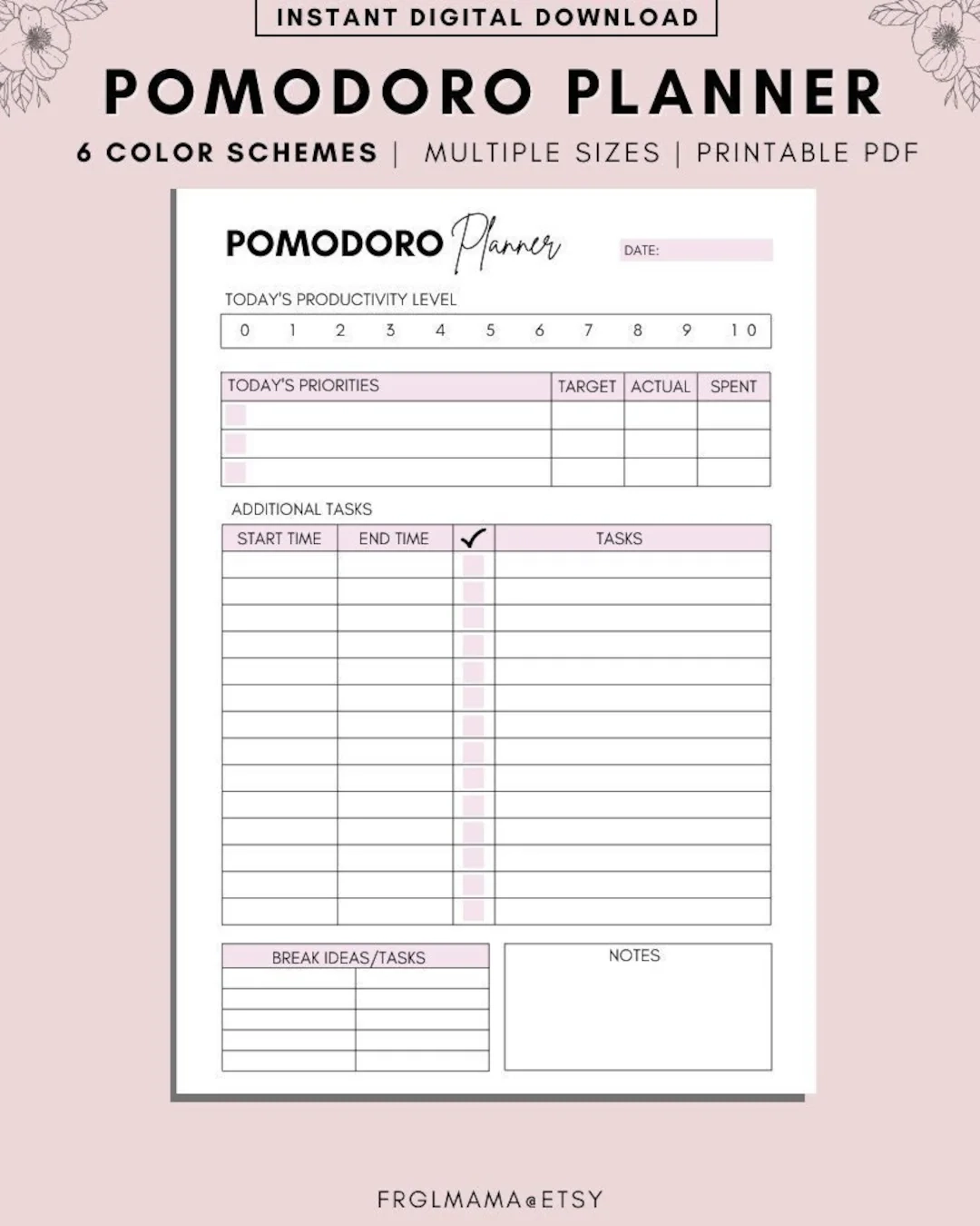 Productivity Planner Pomodoro Printable