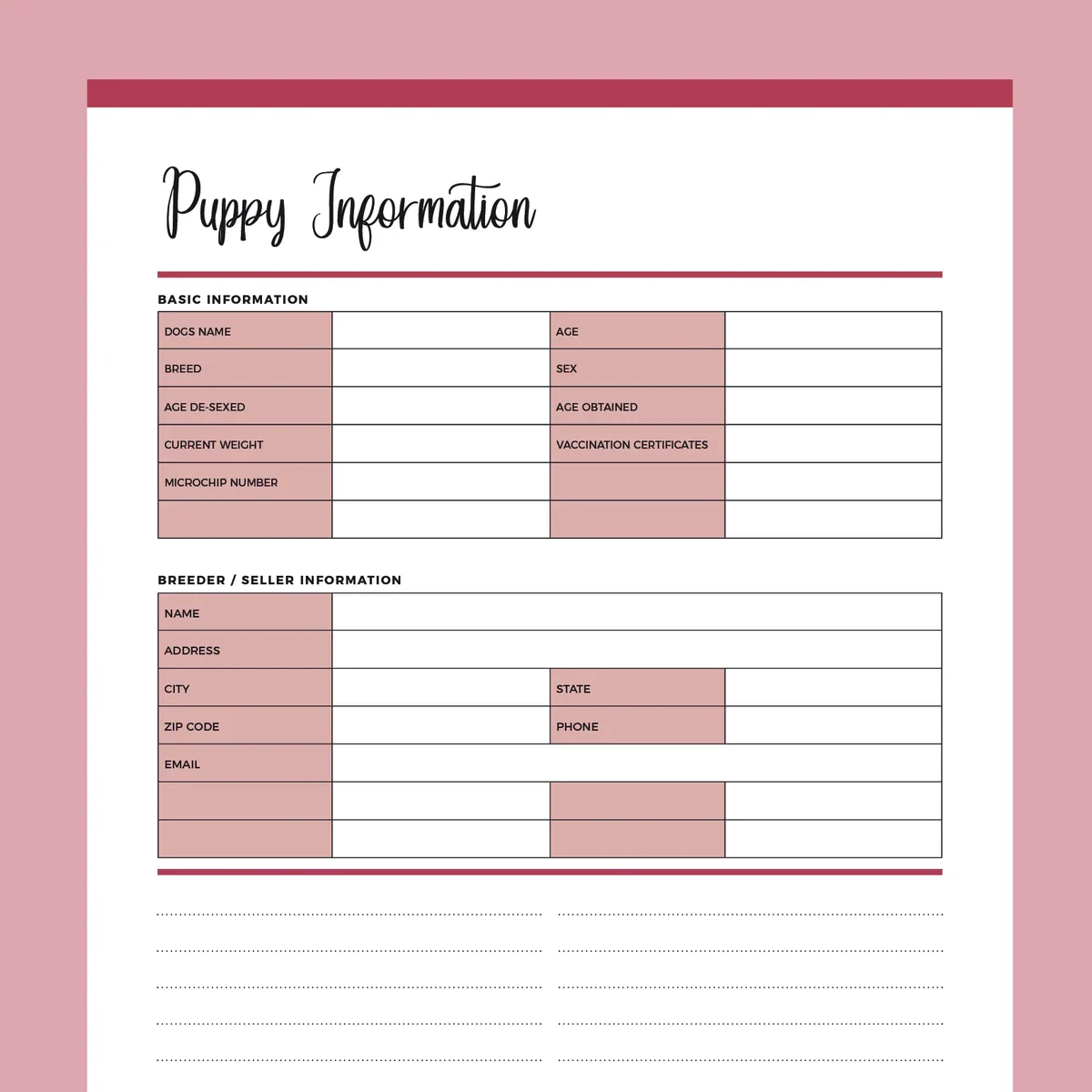 Printable New Puppy Information Template Instant Download PDF A4 And US Letter Plan Print Land