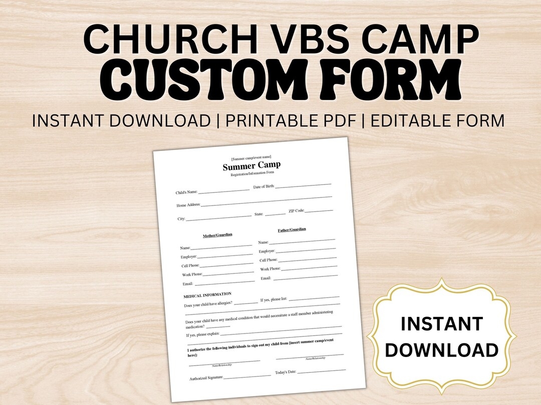 Custom Church Camp VBS Event Registration Editable Instant Digital Download Form Medical Member Child Form Work School Church Emergency Etsy
