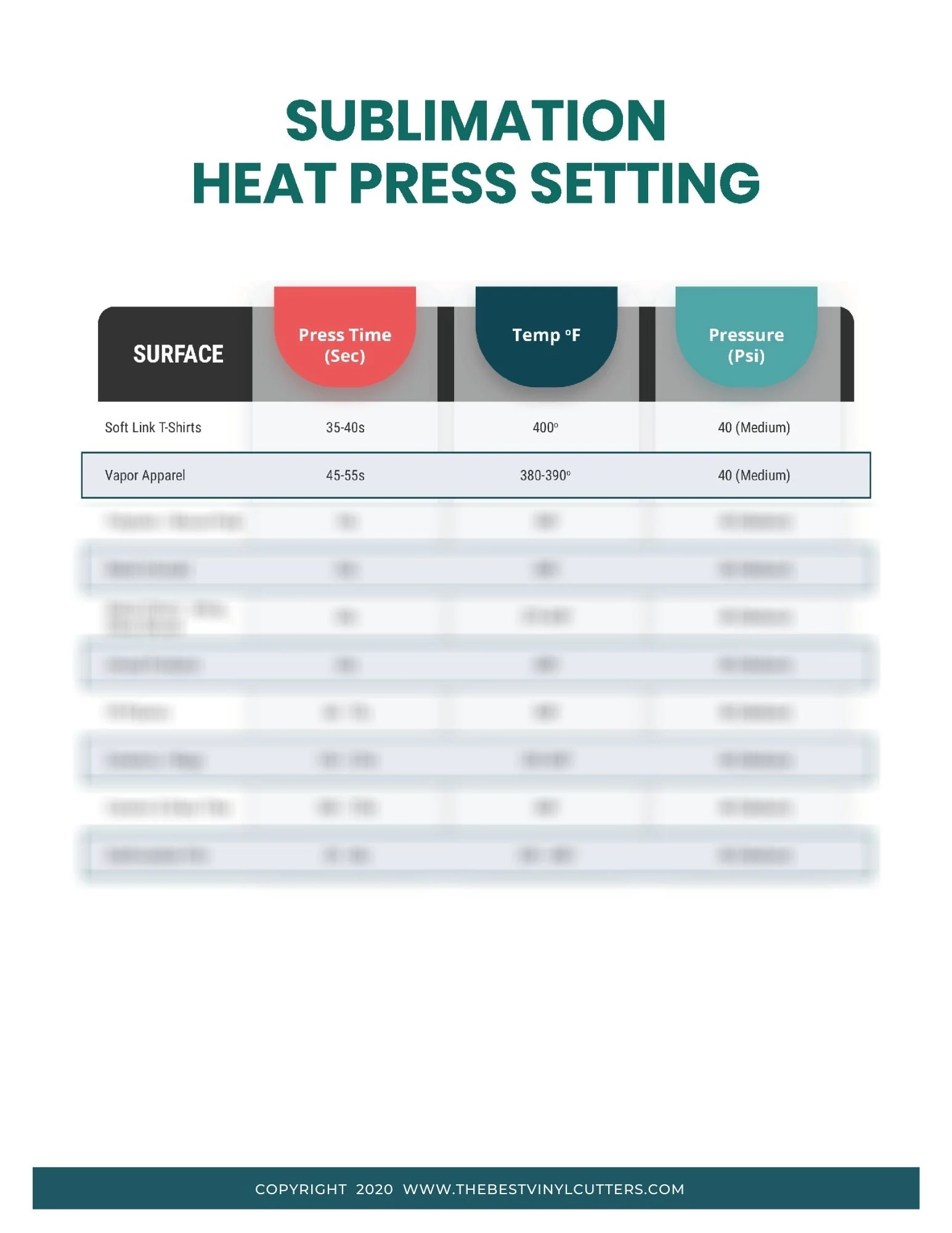 Sublimation Temperature Chart TeckWrapCraft