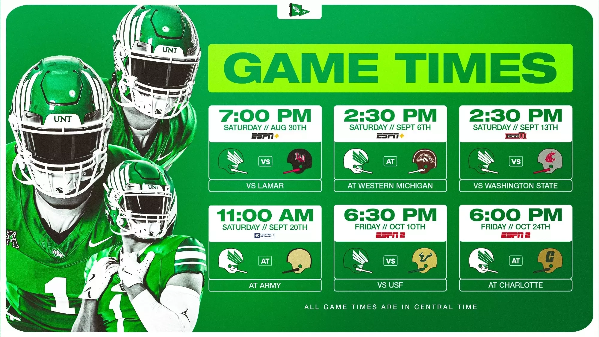 Game Times And TV Schedule Announced For Six Football Games This Fall University Of North Texas Athletics